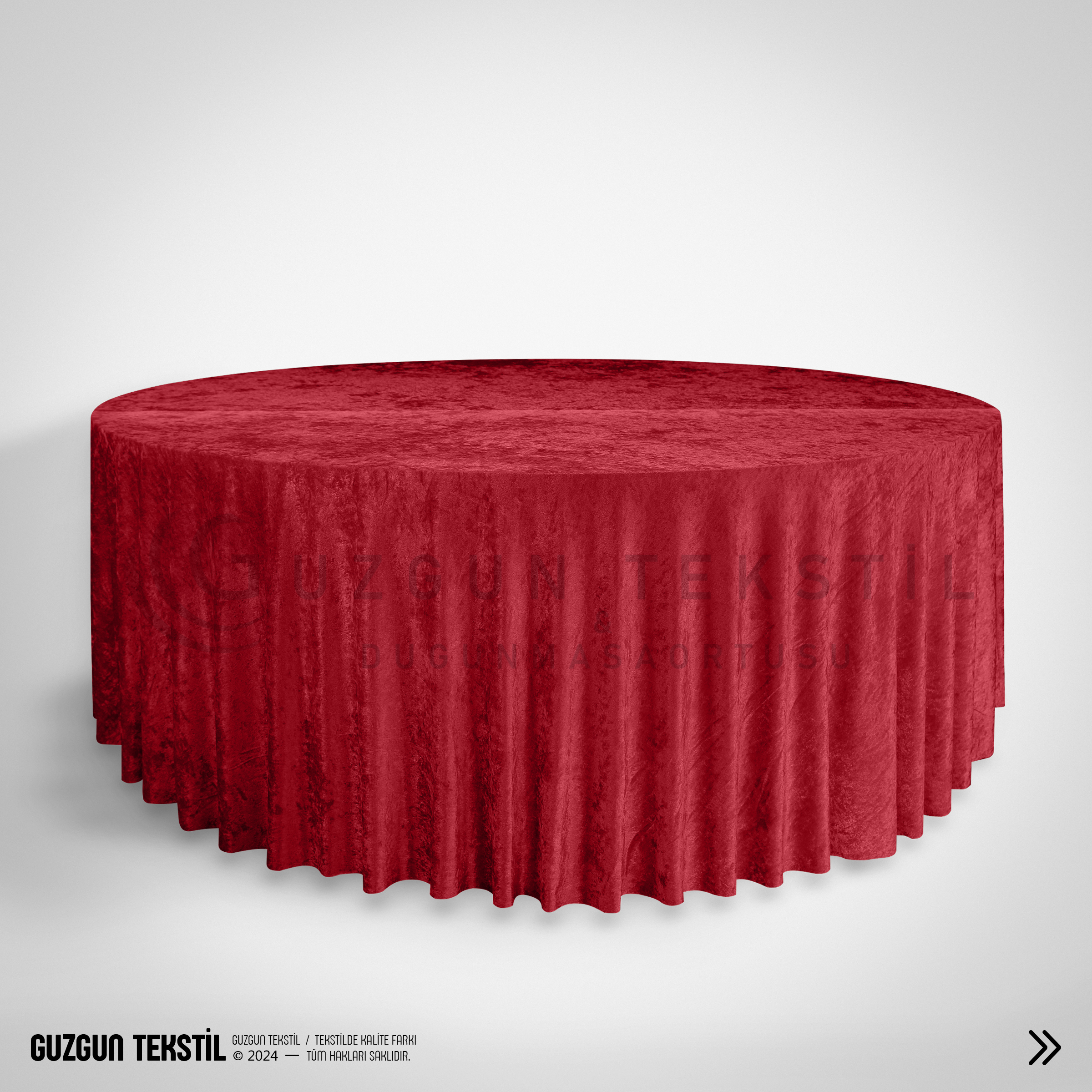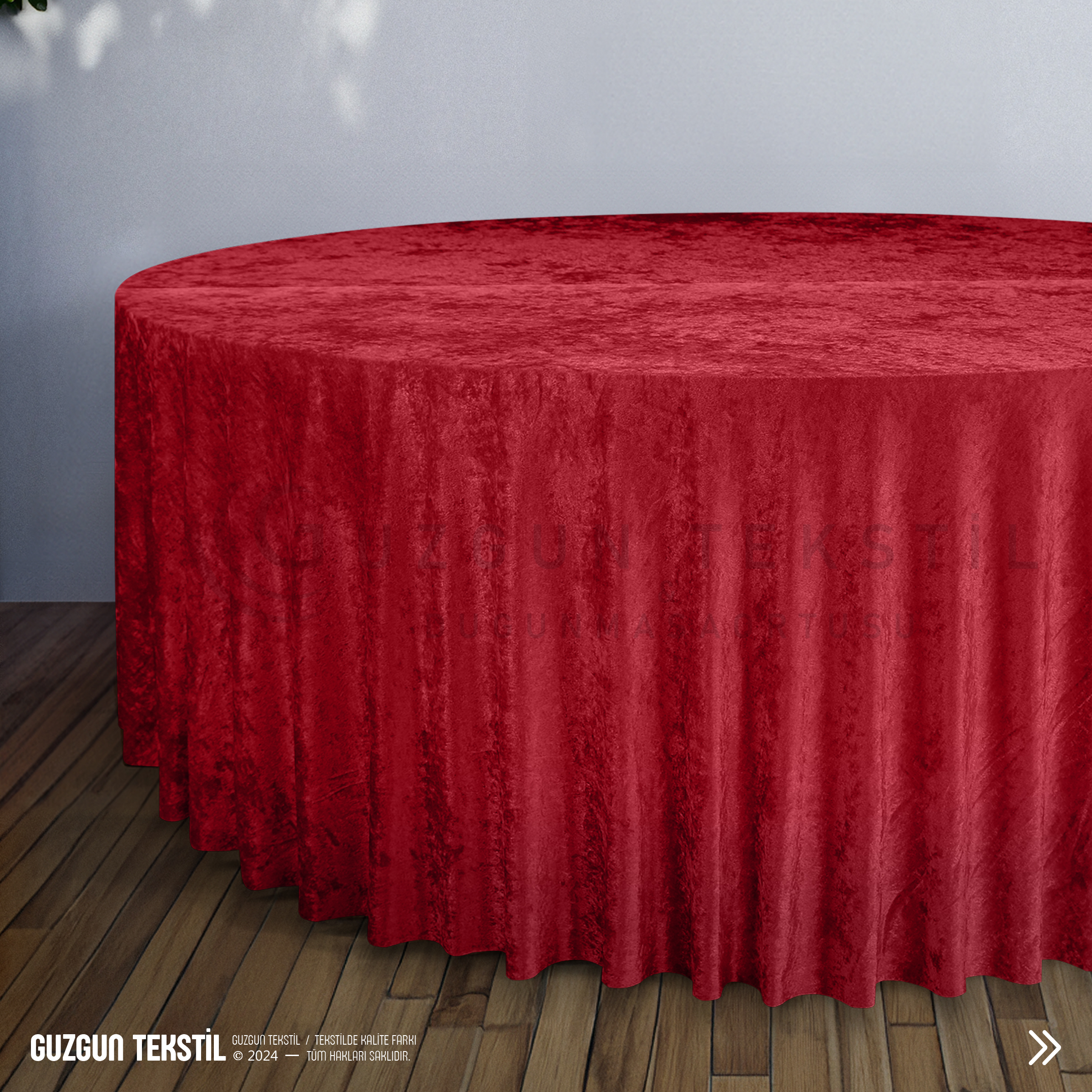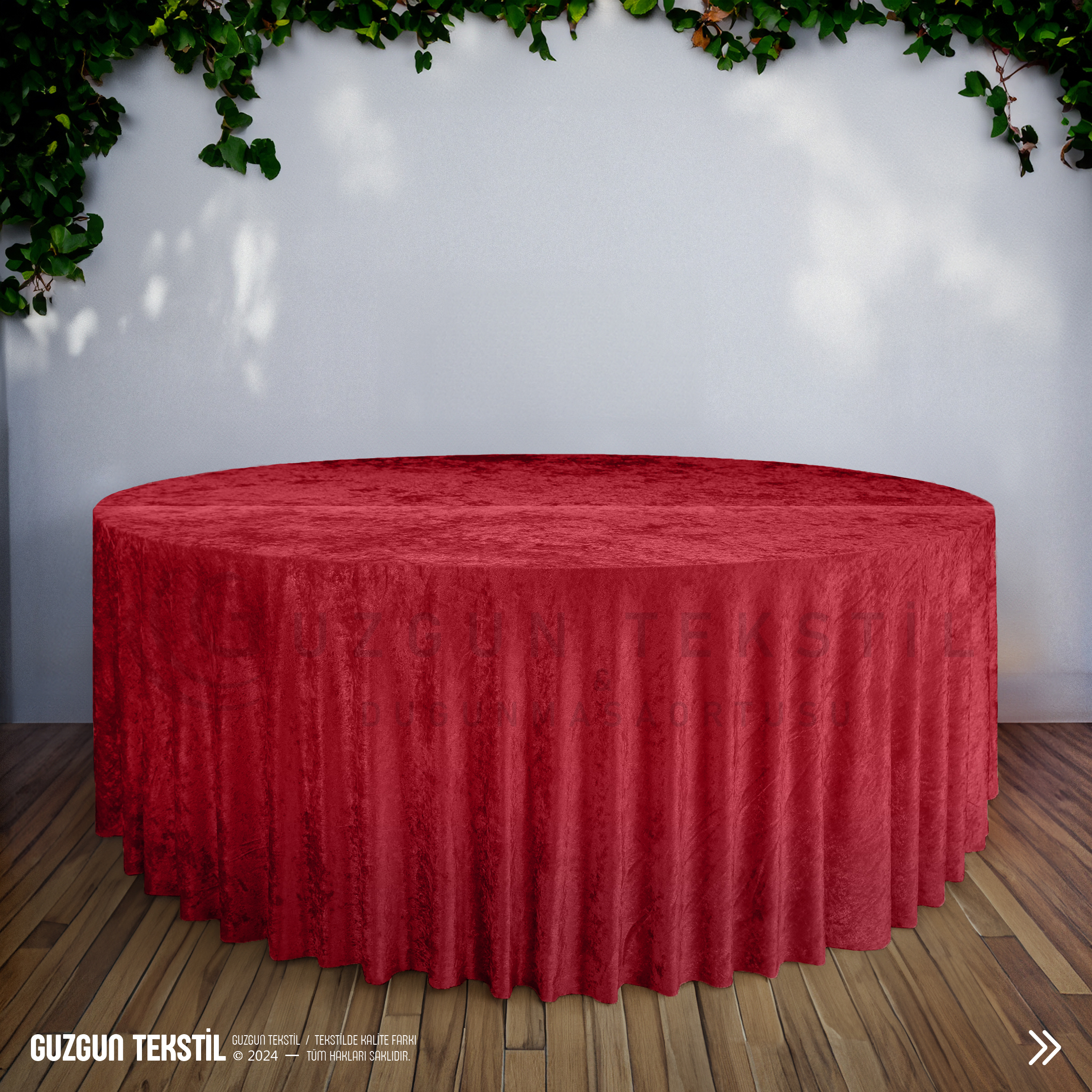 Kırmızı ekli kadife masa örtüsü, canlı ve göz alıcı rengiyle düğün, davet ve özel organizasyonlarda masalarınıza şık ve etkileyici bir görünüm kazandırır.